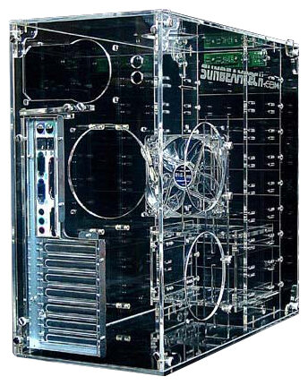 Size: Midi-Tower, motherboard form factor: ATX, number of internal bays 3.5: 4, width: 230 mm, height: 460 mm, depth: 470 mm, possibility of installing a liquid cooling system, case color: transparent