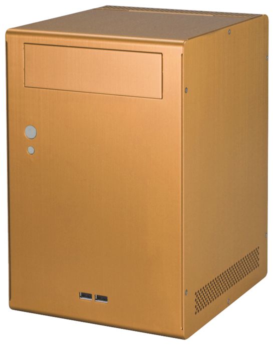 Size: Mini-Tower, motherboard form factor: Mini-ITX, number of internal bays 3.5: 1, number of internal bays 2.5: 1, width: 193 mm, height: 280 mm, depth: 208 mm, color case: golden