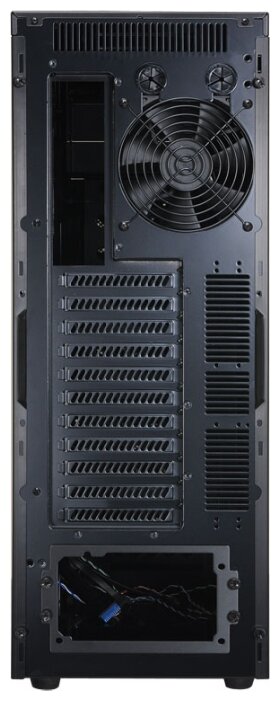 Support for HPTX, XL-ATX boards; Screwless mounting of 5.25 devices; space for two 120 mm fans on top and two 140 mm fans on the side