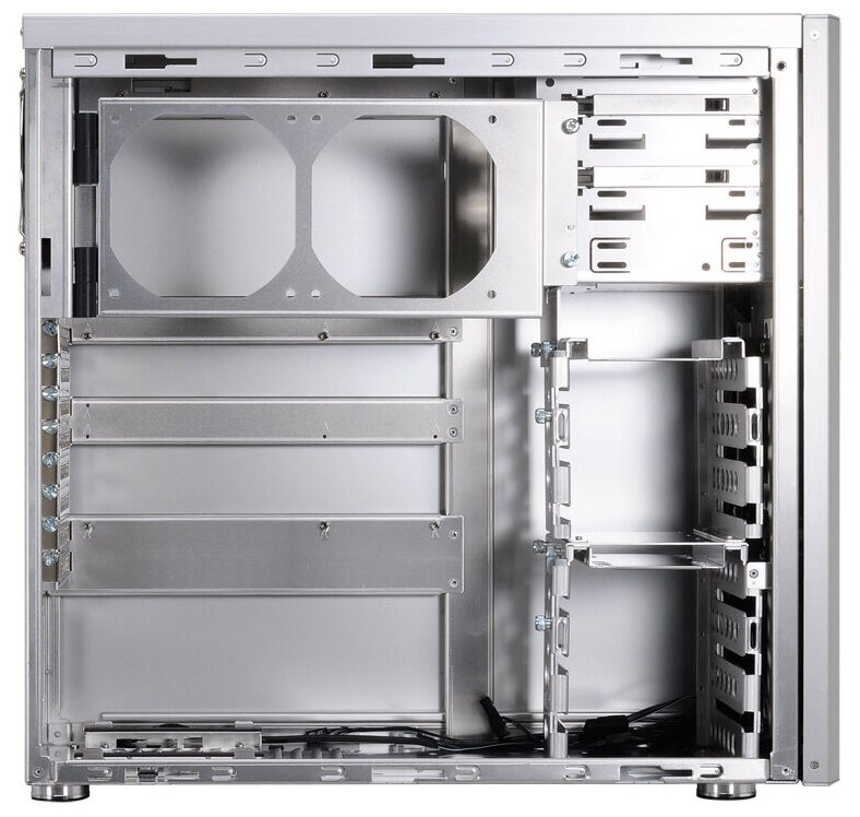 Space for a 140 mm fan on top and two 120 mm fans on the side; screwless mount for 5.25 devices