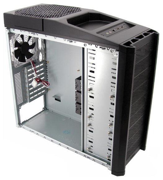 There is a 200 mm fan with a three-position rotation speed switch. 9 bays for installing devices of 5.25" and 3.5" form factors