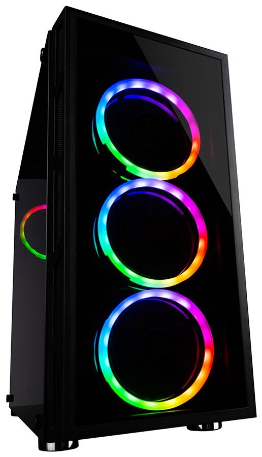 Size: Midi-Tower, motherboard form factor: ATX, Micro-ATX, Mini-ITX, power supply at the bottom, window on the side wall, USB 3.0 on the front panel, width: 205 mm, height: 440 mm, depth: 370 mm, body color: black