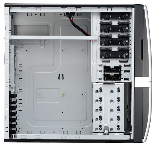 On the top cover there are: 2 x USB2.0, headphone and microphone output, e-SATA interface; fan with a diameter of 400 mm on the side wall
