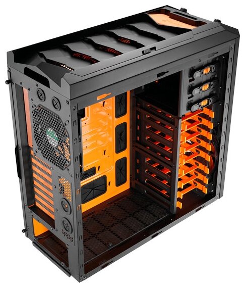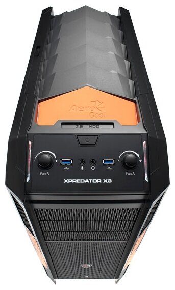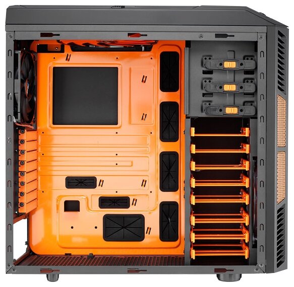 Space for two 120/140 mm fans on the top and left and one on the bottom, two 120 mm fans on the HDD cage; the ability to install one 200 mm fan on top instead of two 120/140 mm; installing an external 3.5 device through the crossbar