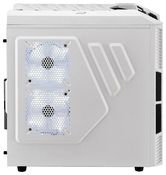 Space for 120 mm fans, two on the front and top, three on the inside in the front, two 120/140 mm on the side and one 120 mm on the bottom