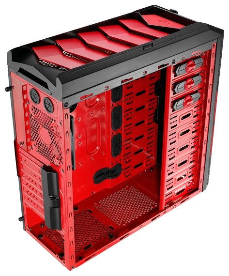 Space for 120 mm fans, two on the front and top, three on the inside in the front, two 120/140 mm on the side and one 120 mm on the bottom