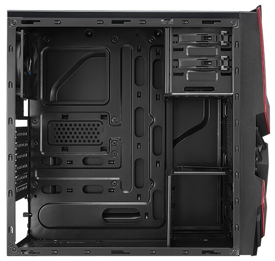 Space for two 120 mm fans in the front; screwless mounting of 5.25 devices; ability to install an external 3.5 device into a 5.25 bay via an adapter