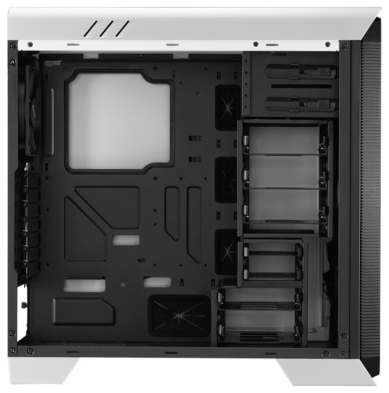3.5 bays are compatible with 2.5 media; space for two 120/140 mm fans on top