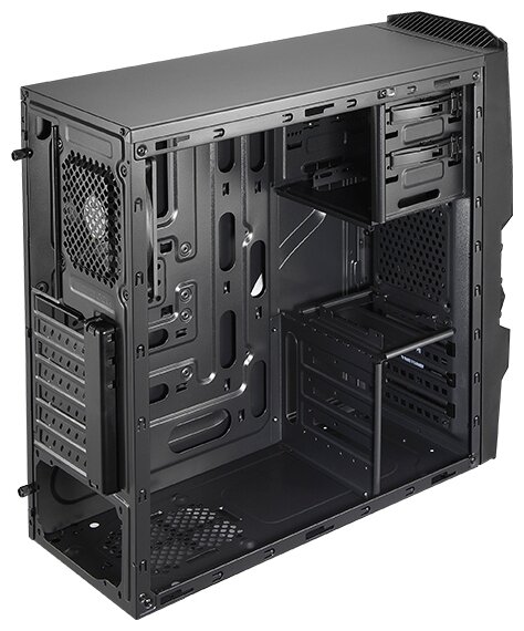 Space for a second 120 mm fan in the front; screwless mounting of 5.25 devices; ability to install an external 3.5 device into a 5.25 bay via an adapter