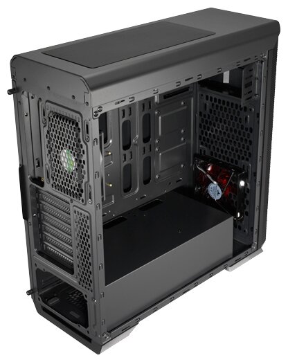 3.5 bays are compatible with 2.5 media; space for two 120 mm fans on top and one 120/140 mm fan on the front