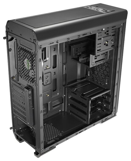 3.5 bays are compatible with 2.5 media; space for 120 mm fans, two in the front and top, and one 120/140 mm fan on the side; Screwless mounting in 3.5 bays