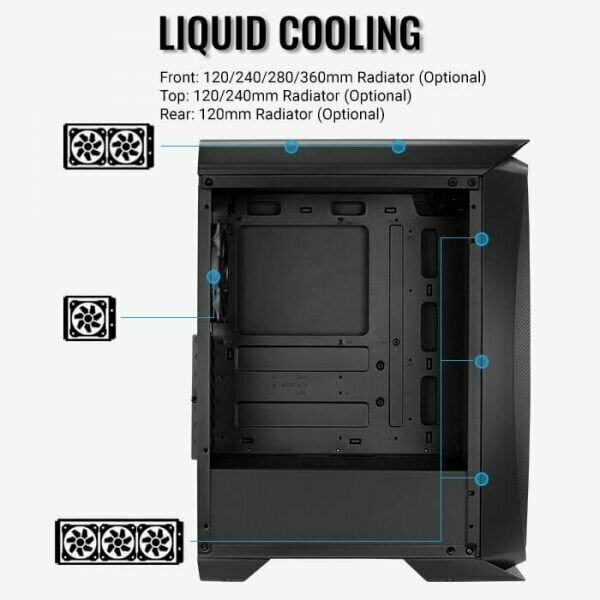 Additional Information: Space for 120 mm fans, two on top and on the power supply casing, for three 120 mm or two 140 mm fans - in the front