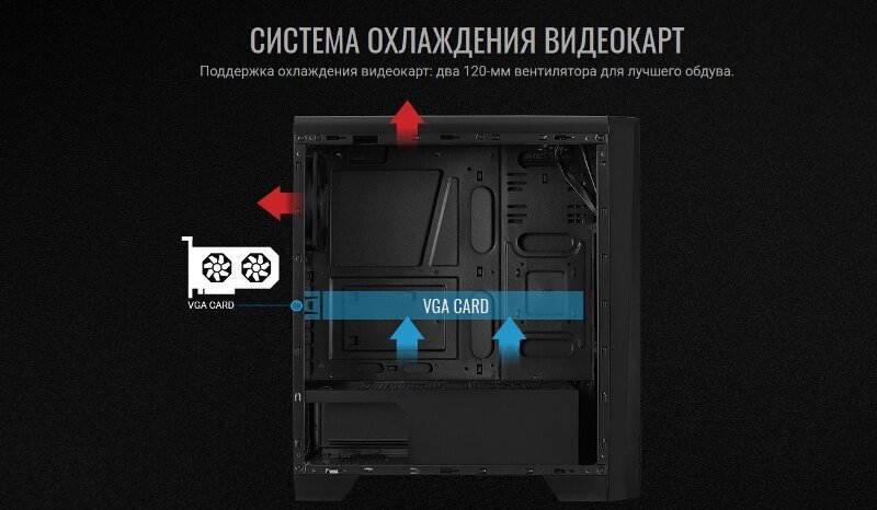 Additional Information: Space for one 120 mm fan on top, for two - on the power supply casing, for three 120 mm or two 140 mm - in the front; support for cooling radiators; 3.5 bays are compatible with 2.5 media; adjustable backlight