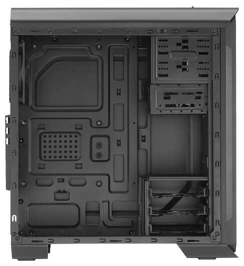 3.5 bays are compatible with 2.5 media; space for 120 mm fans, two in the front and top, and one 120/140 mm fan on the side; Screwless mounting in 3.5 bays