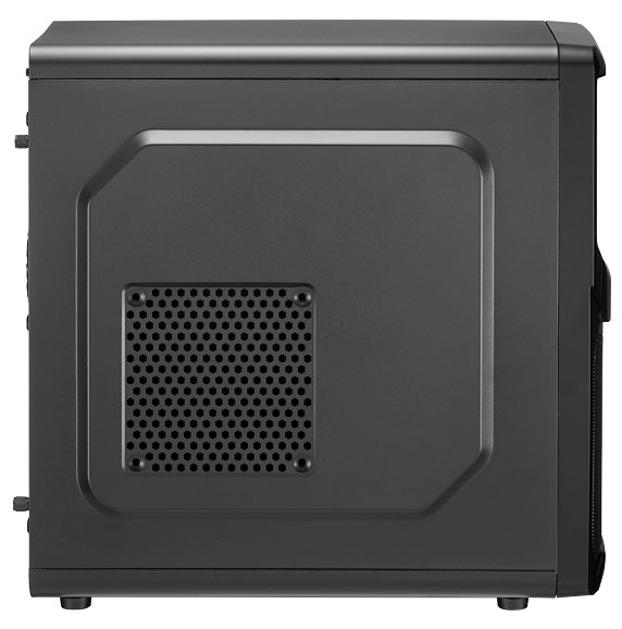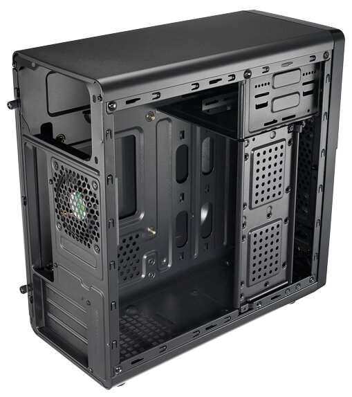 Space for a 120 mm fan on the front and side; 3.5 bay is compatible with 2.5 media