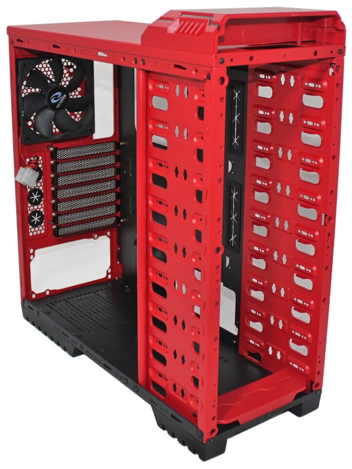 Adapter for installing an external 3.5 device into a 5.25 bay; space for a 180mm fan on the side