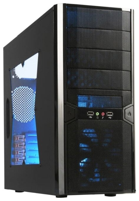 Size: Midi-Tower, motherboard form factor: ATX, Micro-ATX, power supply, power supply power: 401 - 600 W, window on the side wall, number of internal compartments 3.5: 5, width: 185 mm, height: 408 mm, depth: 475 mm, body color