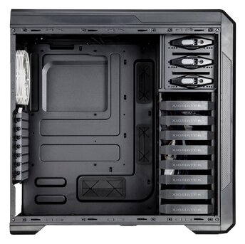 Adapter for installing an external 3.5" device into a 5.25" bay; space for 120 mm fans, two in front, on top and on the HDD cage, and for 80/92/120 mm - on the bottom