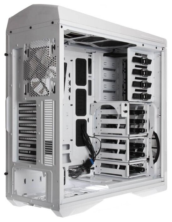 Support for XL-ATX boards; space for one 200 mm or two 140 mm or three 120 mm fans on top, two 120/140 mm on the bottom and one 140/120 mm on the HDD cage;