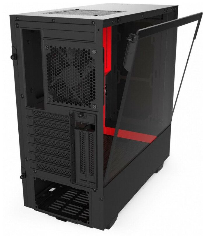 NZXT CA-H510I-BR H510i Compact Mid Tower Black/Red Chassis with Smart Device 2, 2x120mm Aer F Case Fans, 2xLED Strips and Vertical GPU Mount CA-H510I-BR