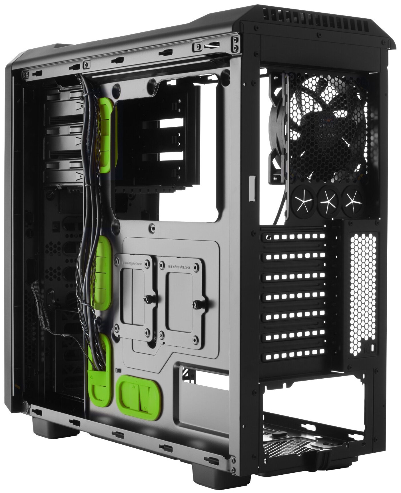 Space for a 140 mm fan at the front, two 120/140 fans at the top and one at the bottom