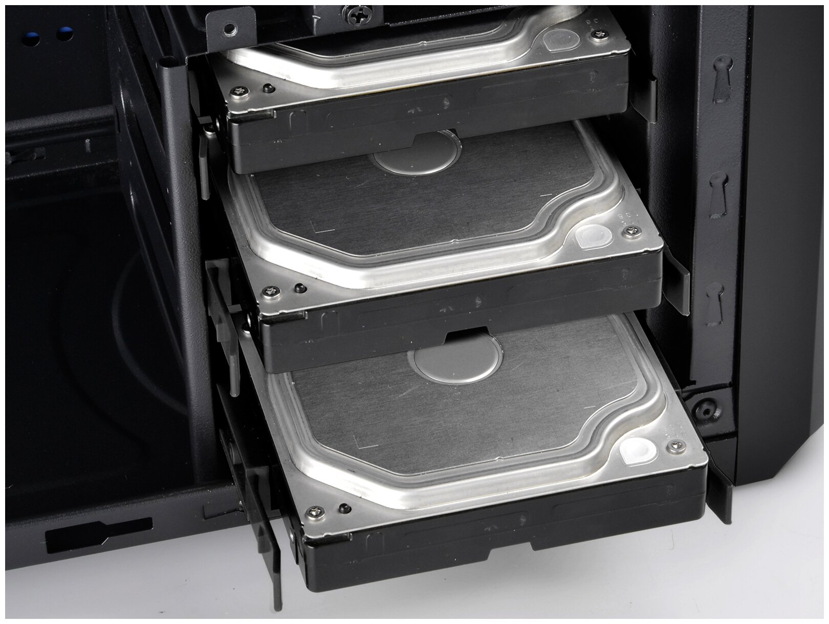 3.5 bays are compatible with 2.5 media; Supports liquid cooling system height up to 240 mm; KENDOMEN RD - fans with red LED backlight; KENDOMEN TI - fans with white LED backlighting