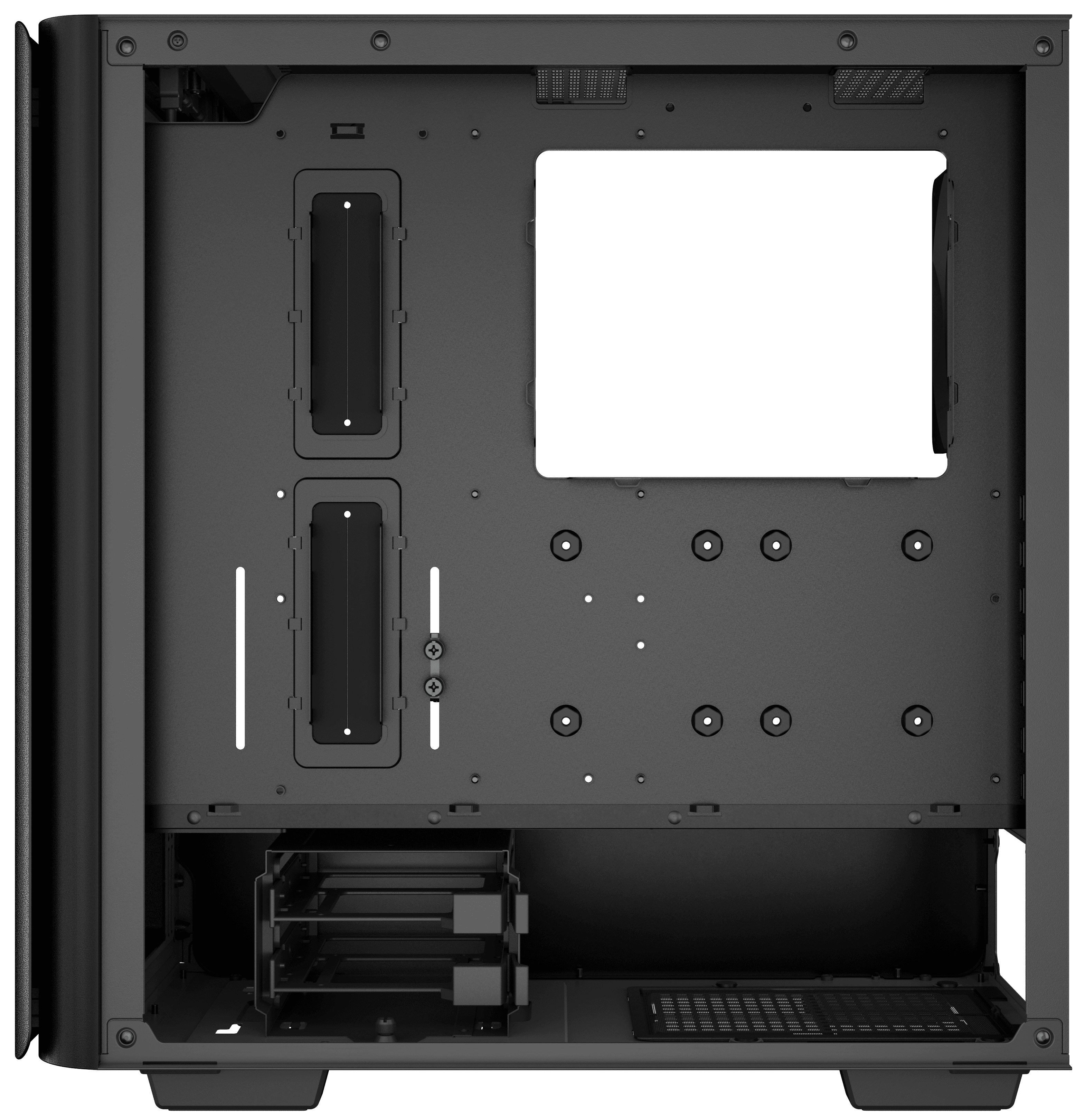 Power supply at the bottom, horizontal