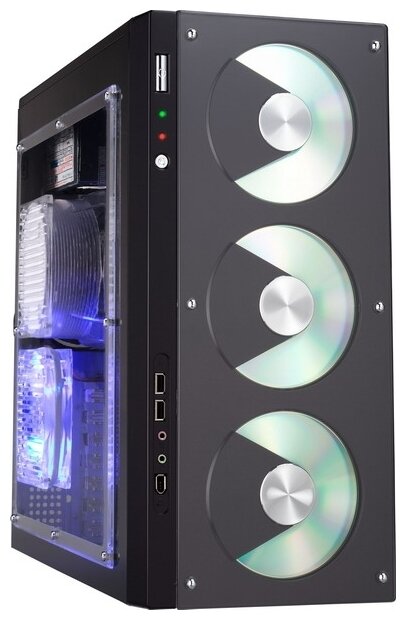 Places for 80/120 mm fans, one at the front and rear and two at the side; holder for 3 CDs on the front panel; screwless mounting of 5.25" devices