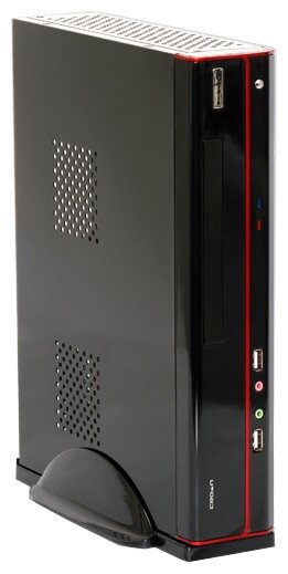 The ability to use the case in horizontal and vertical positions; for vertical use there is a stand that comes included; space for a 40 mm fan at the bottom; optical drive from laptop