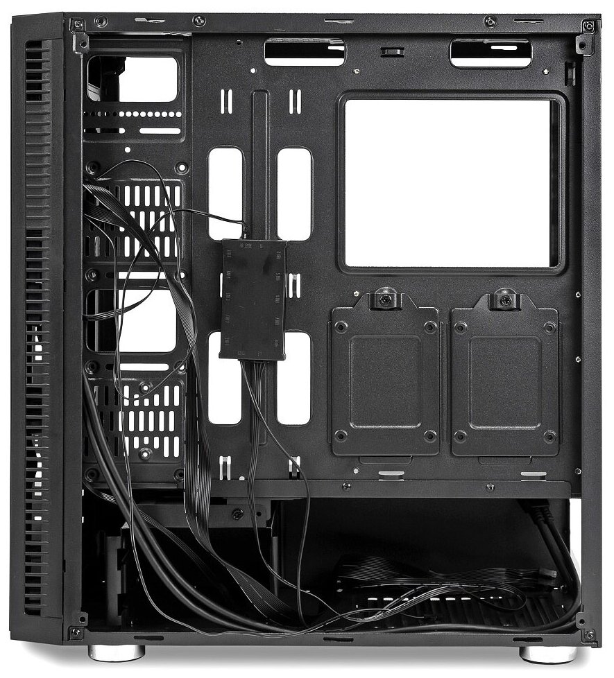 Space for one 120 mm fan at the rear and two 120/140 mm fans at the top; radiator support