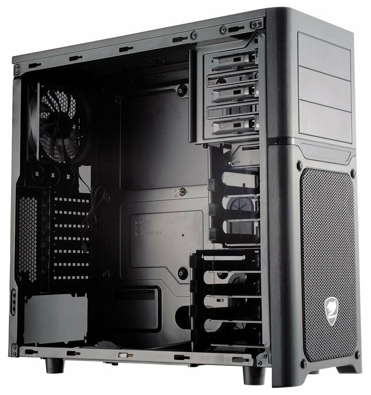 Space for 120/140 mm fans, one at the front, bottom and left, for two 120/140 mm or one 180/200 mm - at the top
