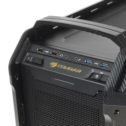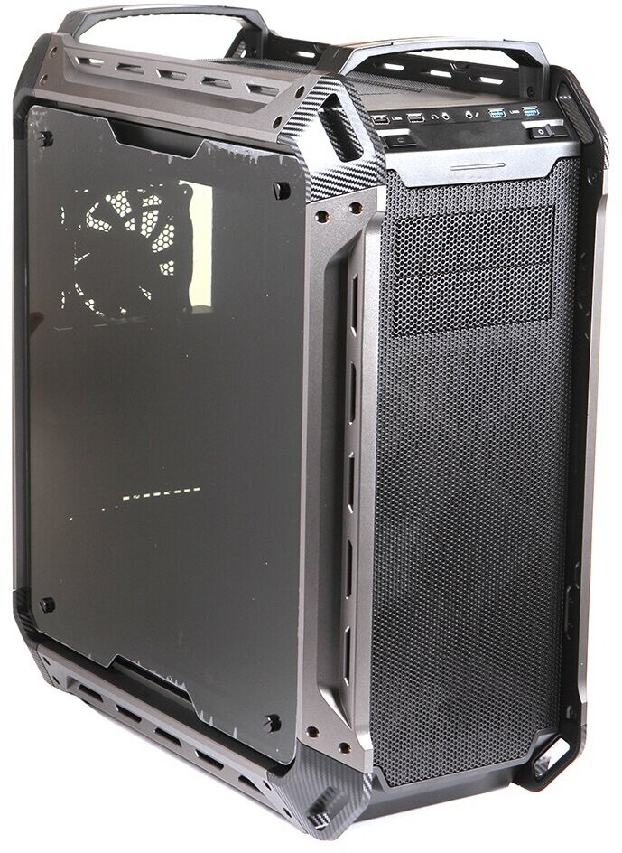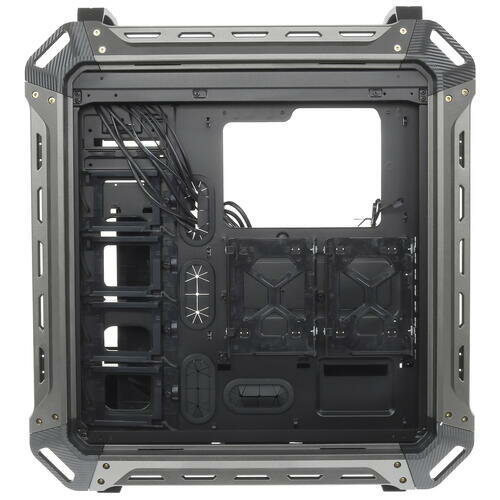 Space for one 120/140 mm fan on the bottom, three 120/140 mm fans on the front, three 120 mm or two 140 mm fans on the top
