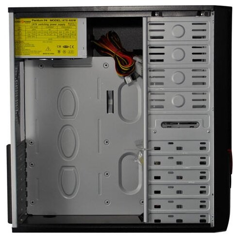 Size: Midi-Tower, motherboard form factor: ATX, power supply, power supply power: 201 - 400 W, number of internal bays 3.5: 6, width: 180 mm, height: 410 mm, depth: 420 mm, body color: black
