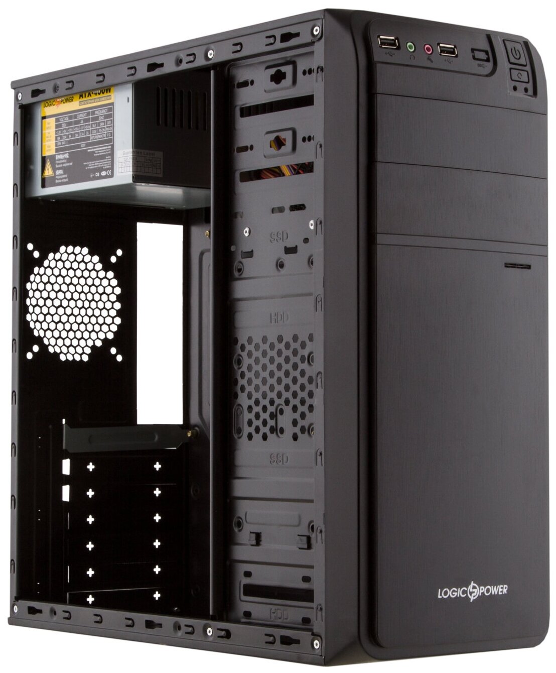 Size: Midi-Tower, motherboard form factor: ATX, power supply, power supply power: 201 - 400 W, window on the side wall, number of internal compartments 3.5: 5, width: 195 mm, height: 456 mm , depth: 504 mm, body color: edge