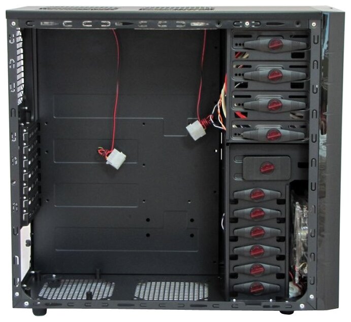 Size: Midi-Tower, motherboard form factor: ATX, power supply at the bottom, presence of a window on the side wall, number of internal compartments 3.5: 6, possibility of installing a liquid cooling system, case color: black