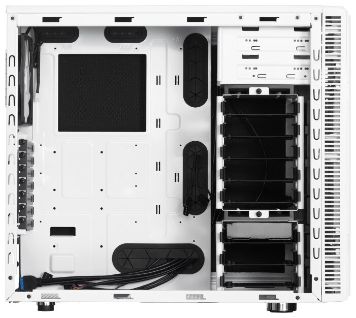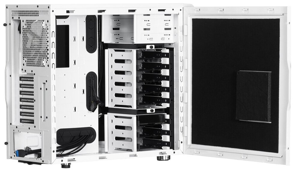Mounting 3.5 devices on a slide; space for one 120/140 mm fan in the front and bottom, for two 120/140 mm fans on the top, for 140 mm on the side