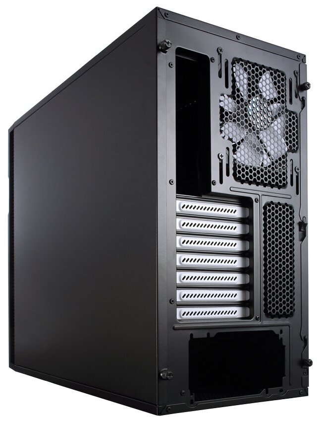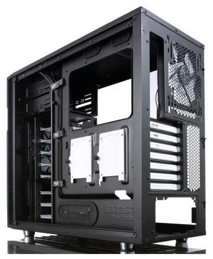 3.5 bays are compatible with 2.5 media; space for three 120/140 mm fans on top, two on the bottom, and one on the front and side; possibility of installing cooling radiators