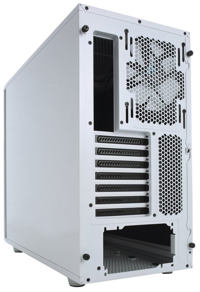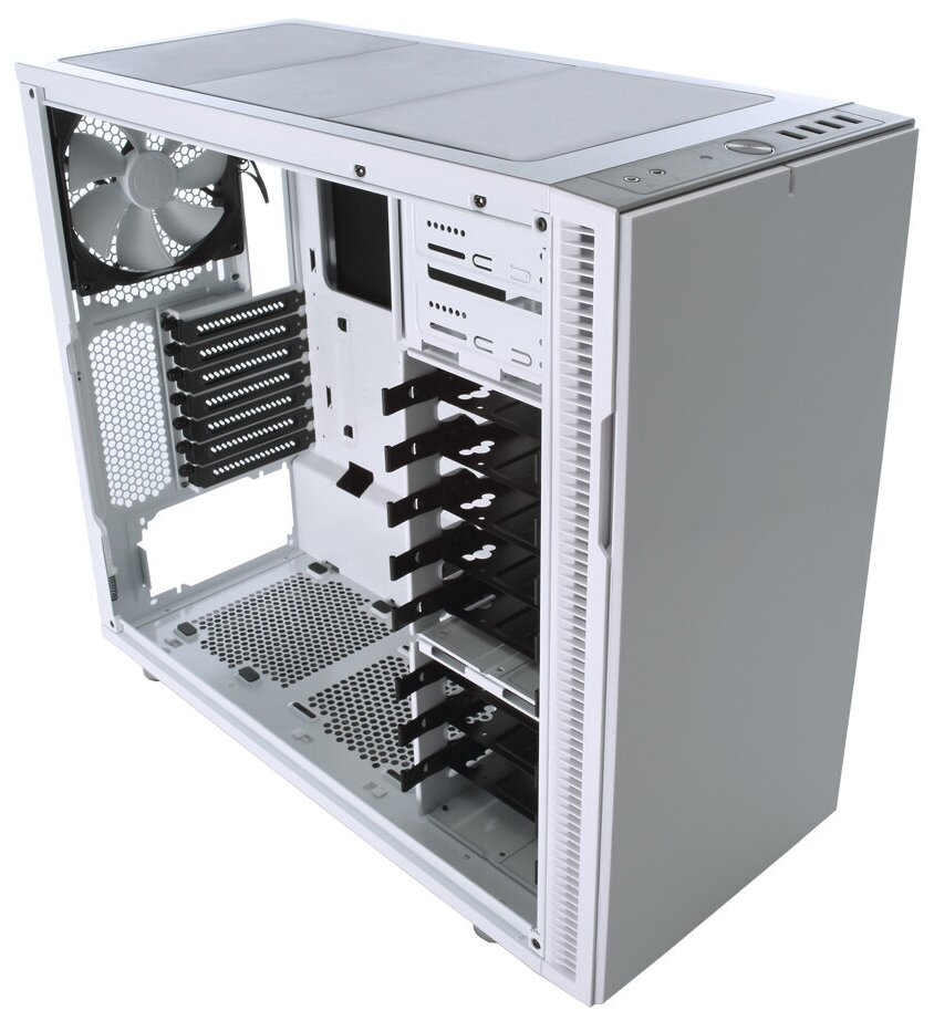 3.5 bays are compatible with 2.5 media; space for three 120/140 mm fans on top, two on the bottom, and one on the front and side; possibility of installing cooling radiators