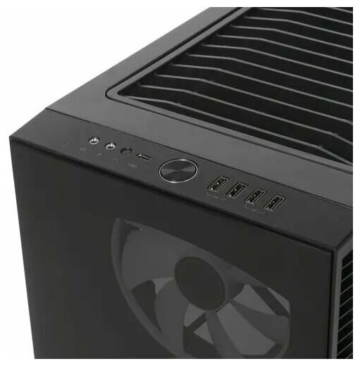 Space for three 120/140 mm fans on top, for two on the bottom; support for cooling radiators; 3.5" bays are compatible with 2.5" media; USB interfaces on the front panel: 1 x USB 3.1 Gen 2 Type-C, 2 x USB 3.0, 2 x USB 2.0