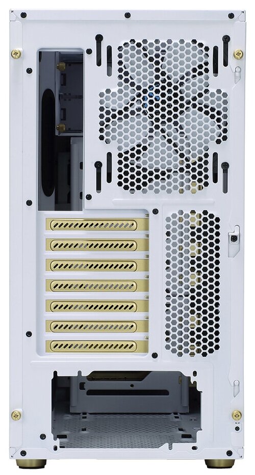 3.5 bays are compatible with 2.5 media; space for three 120/140 mm fans on top, two on the bottom and one on the front; possibility of installing cooling radiators