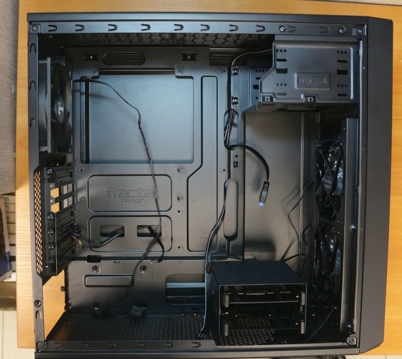 Space for two 120/140 mm fans on top and one 120 mm fan on the back and bottom
