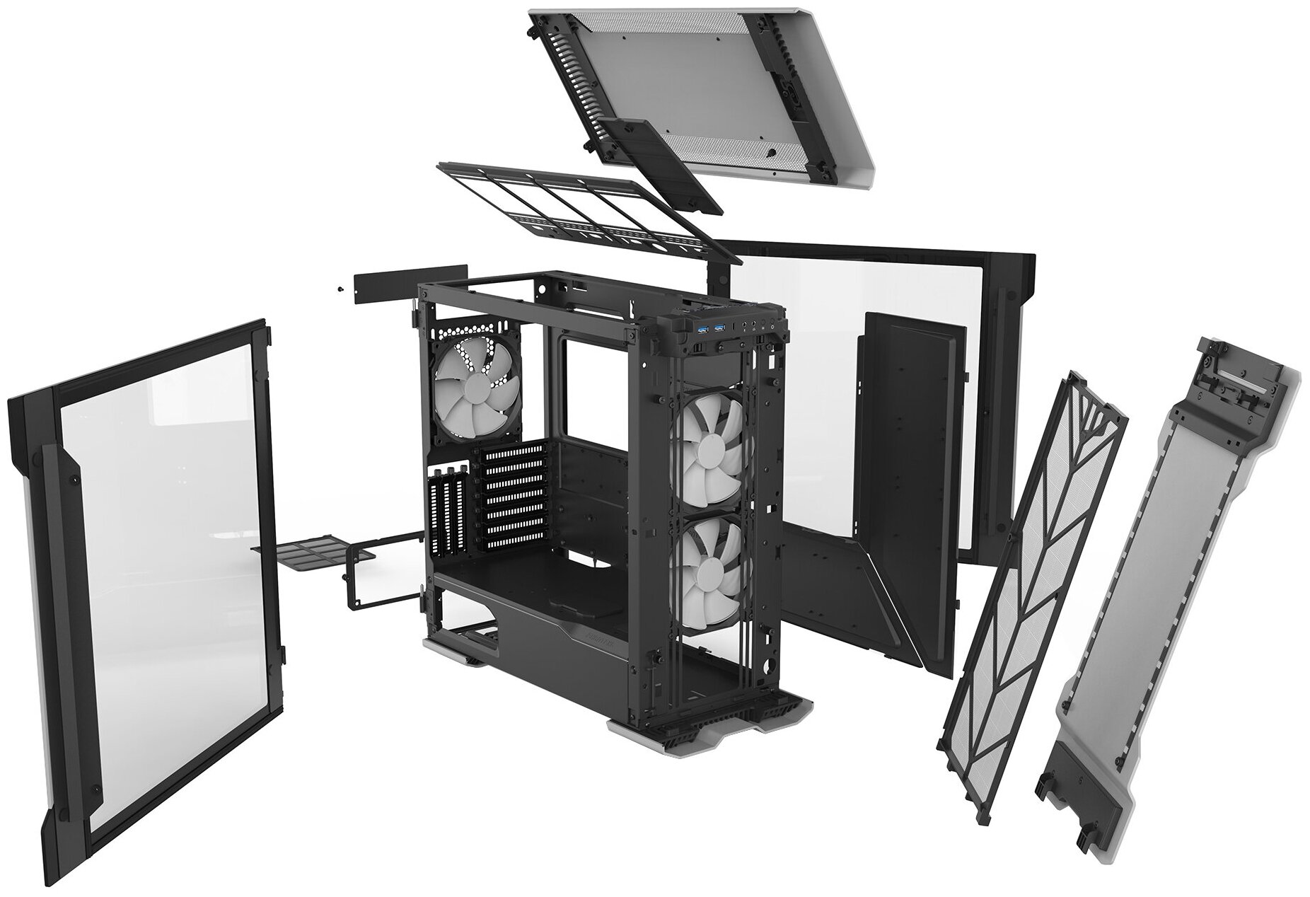 Supports installation of up to 10 3.5" drives and up to 9 2.5" drives when installing optional mounts; space for one 120/140 mm fan in the front, for three 120 mm or two 140 mm fans on the top; radiator support