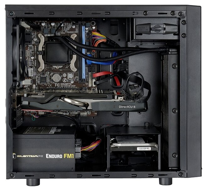 Space for a 120 mm fan in the front and two on top; support for cooling radiators; removable baskets for 5.25/3.5" devices