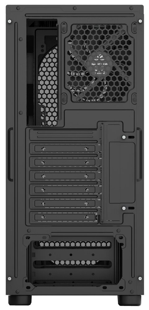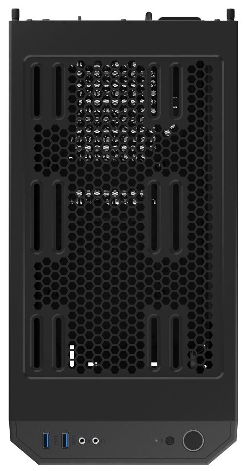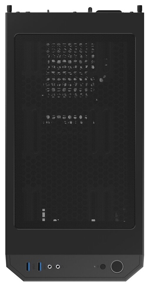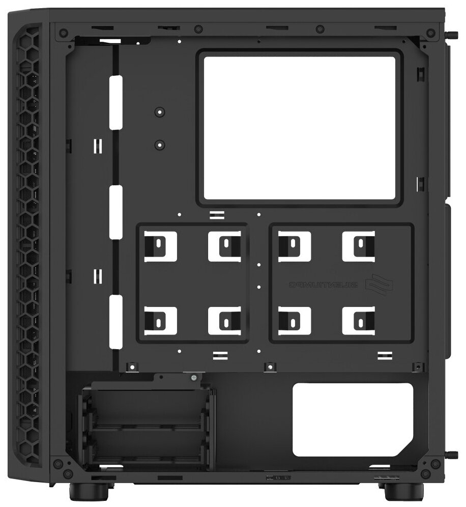 Space for two 120 mm fans on the power supply casing, three on the front and two 120/140 mm on the top; 3.5 bays are compatible with 2.5 media; radiator support