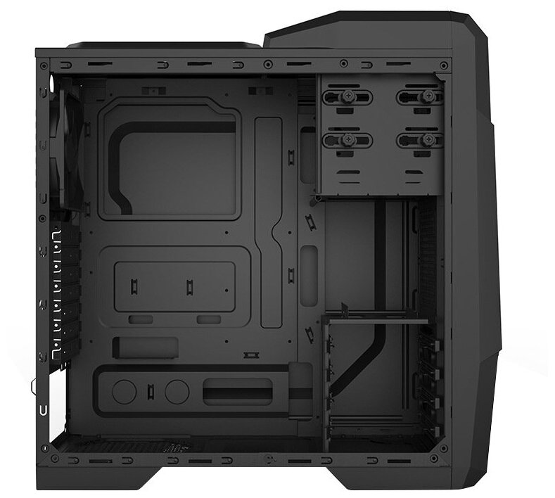 Space for 120 mm fans, two in the front and top and one in the back and side