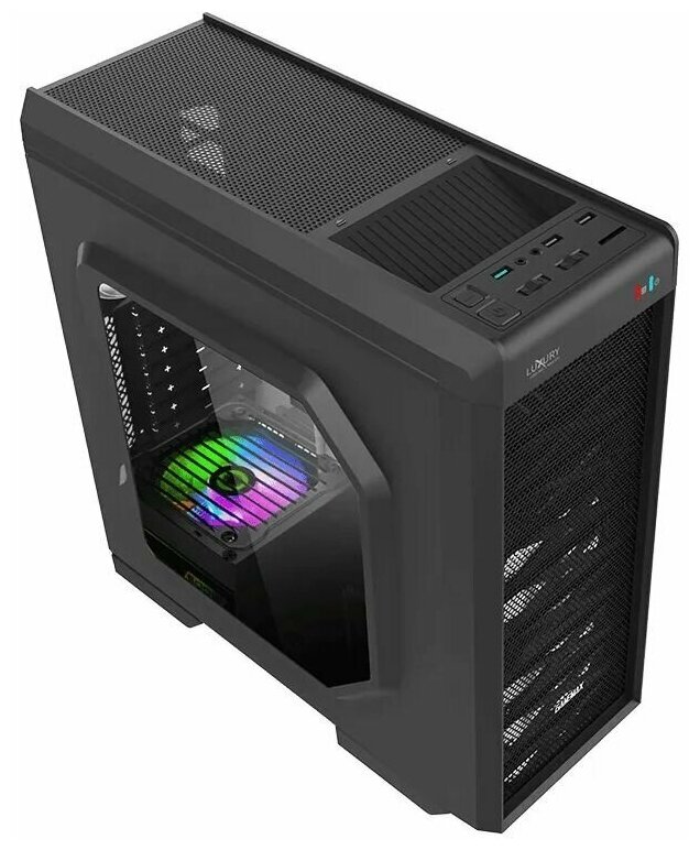 Size: Midi-Tower, motherboard form factor: ATX, power supply, power supply power: 201 - 400 W, window on the side wall, number of internal compartments 3.5: 5, width: 195 mm, height: 456 mm , depth: 504 mm, body color: edge