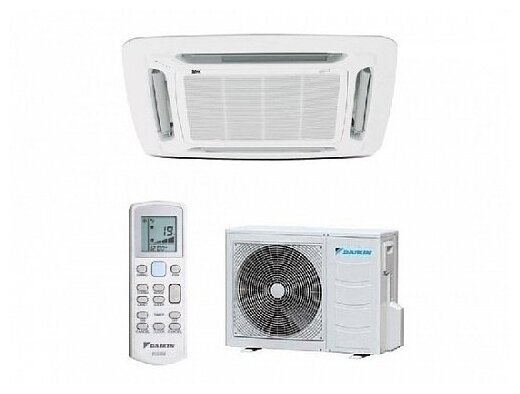 Air conditioner type: cassette, room area: 80 – 120 m², operating mode: heating, additional modes: forced ventilation, maximum noise level: 42 dB