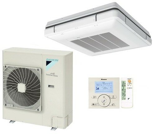 Type of air conditioner: cassette, room area: more than 120 m², inverter, Air conditioner power BTU: 41, operating mode: heating, cooling, additional modes: ventilation, night, dehumidification, supply ventilation, class e