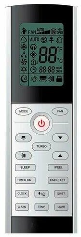 Display, operation indication, remote control, air flow direction adjustment, on/off timer, Auto-cleaning, Auto-restart, Anti-corrosion coating, Built-in clock, Climate control, Off timer