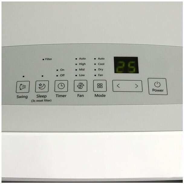 Air conditioner type: mobile, room area: 21 – 30 m², Air conditioner power BTU: 9, operating mode: cooling, additional modes: ventilation, night, dehumidification, energy class: A, features: display, indicator